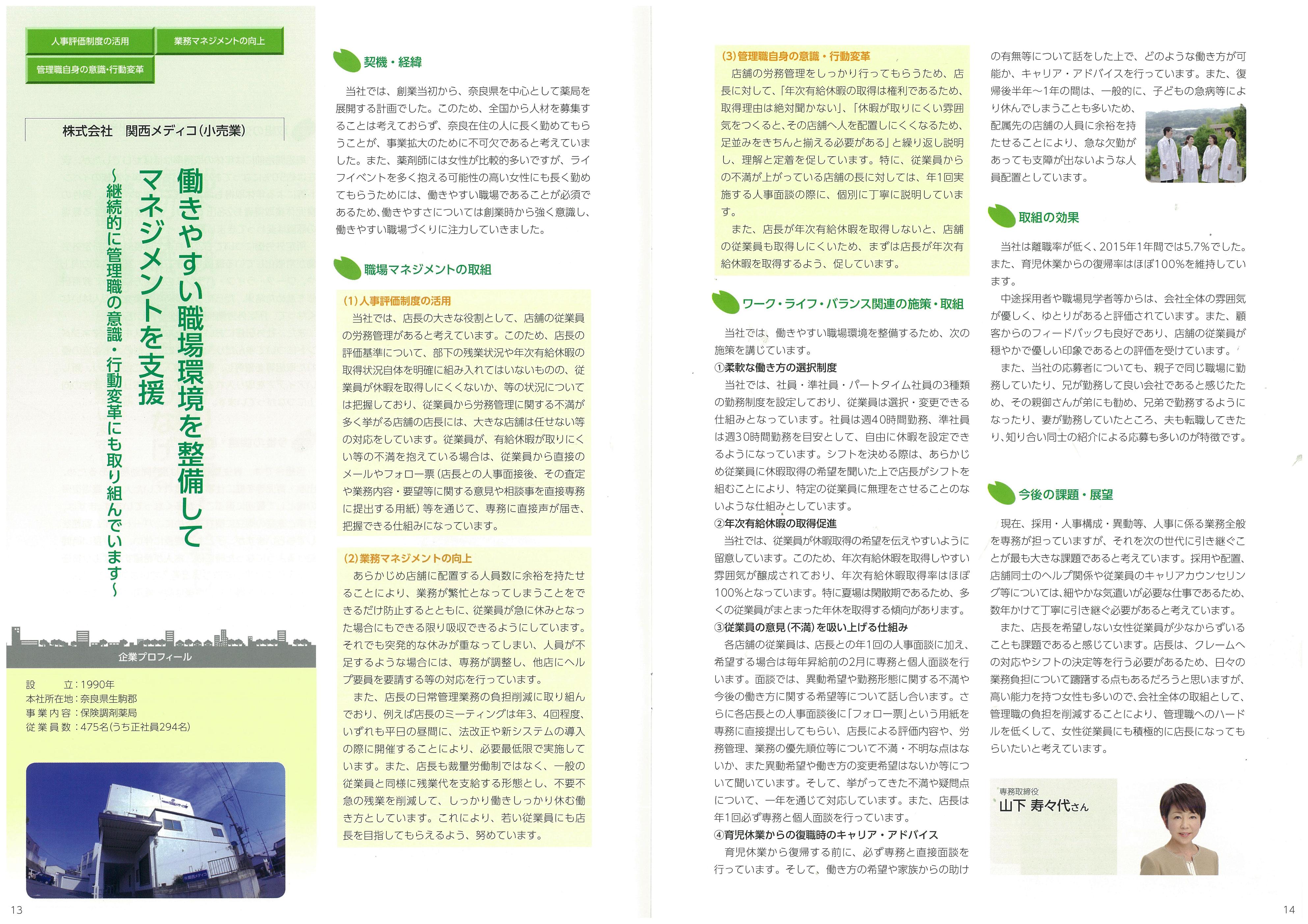 事例集では、全国より14の企業が選出され、関西メディコの取り組みもその中で紹介されています。