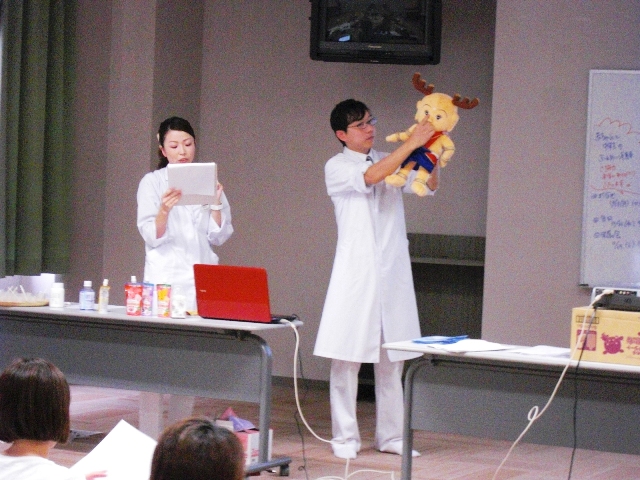 小さい子にお薬を使う時に気を付けてほしいことや、お薬の飲ませ方等についてお話しする時間をいただきました。