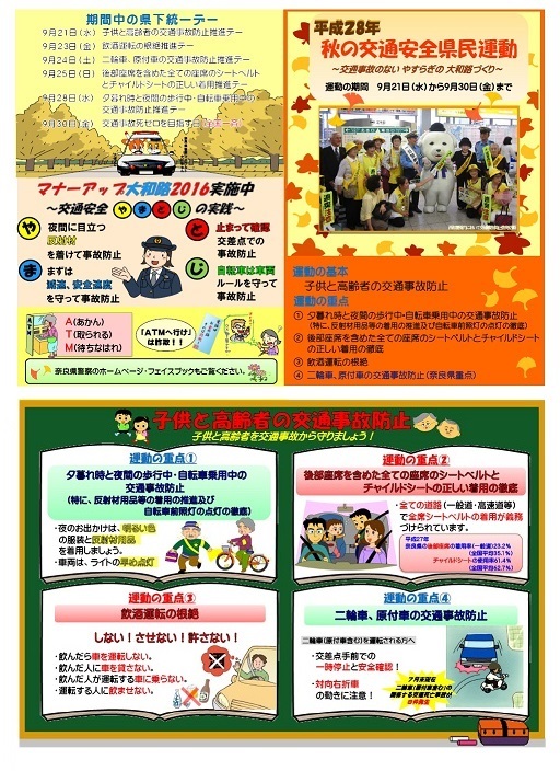 9月は 奈良県警による秋の交通安全運動月間となっています。